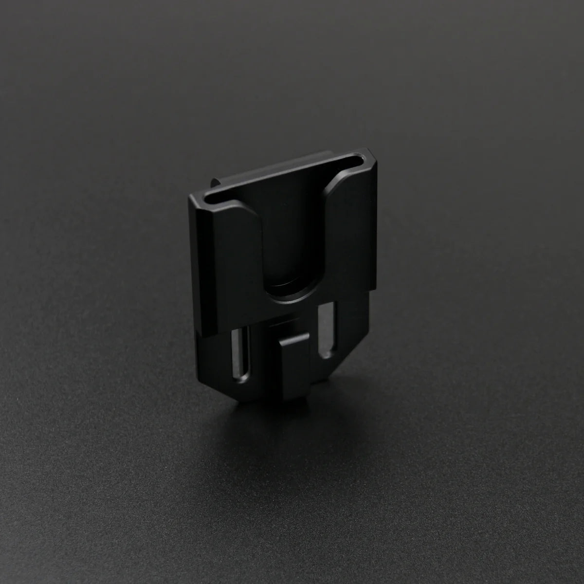 Crafted from durable aircraft aluminum, the high-quality construction ensures optimal strength, reliability, and longevity, allowing you to confidently embark on your journeys without worrying about the safety of your lightsaber. Equipped with a convenient hook for a D-ring and a Covertec wheel slot, the belt clip offers versatile compatibility. It seamlessly integrates with sabers that have a D-ring or Covertec wheel/adapter installed, ensuring a snug and secure fit. Whether you prefer the classic D-ring attachment or the sleek functionality of the Covertec wheel, it has you covered.