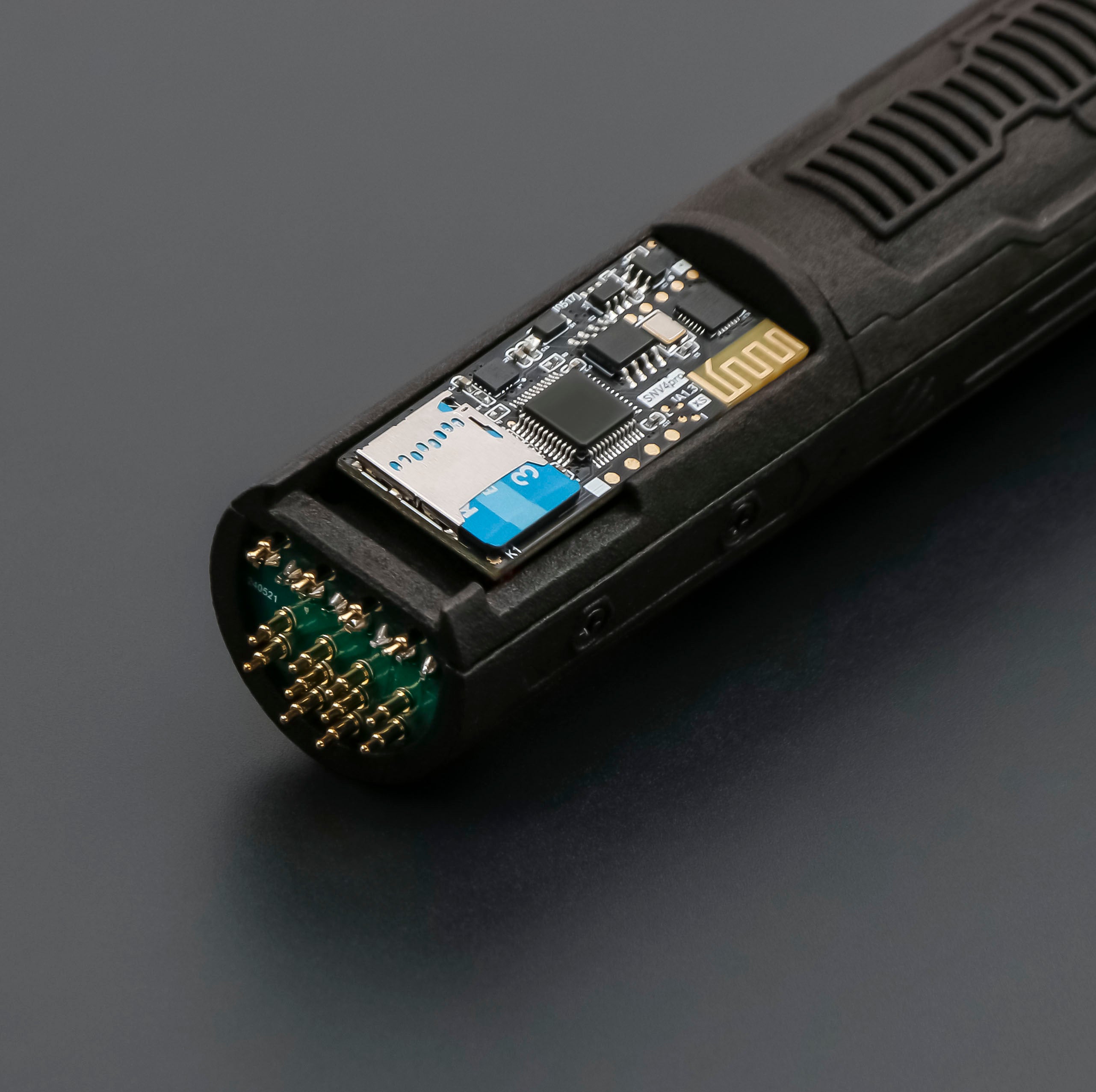Premium Neopixel Soundboard Realistic sound effects: 27 soundfonts for realistic saber sound effects, character quotes, and iconic music, volume adjustment and mute mode.