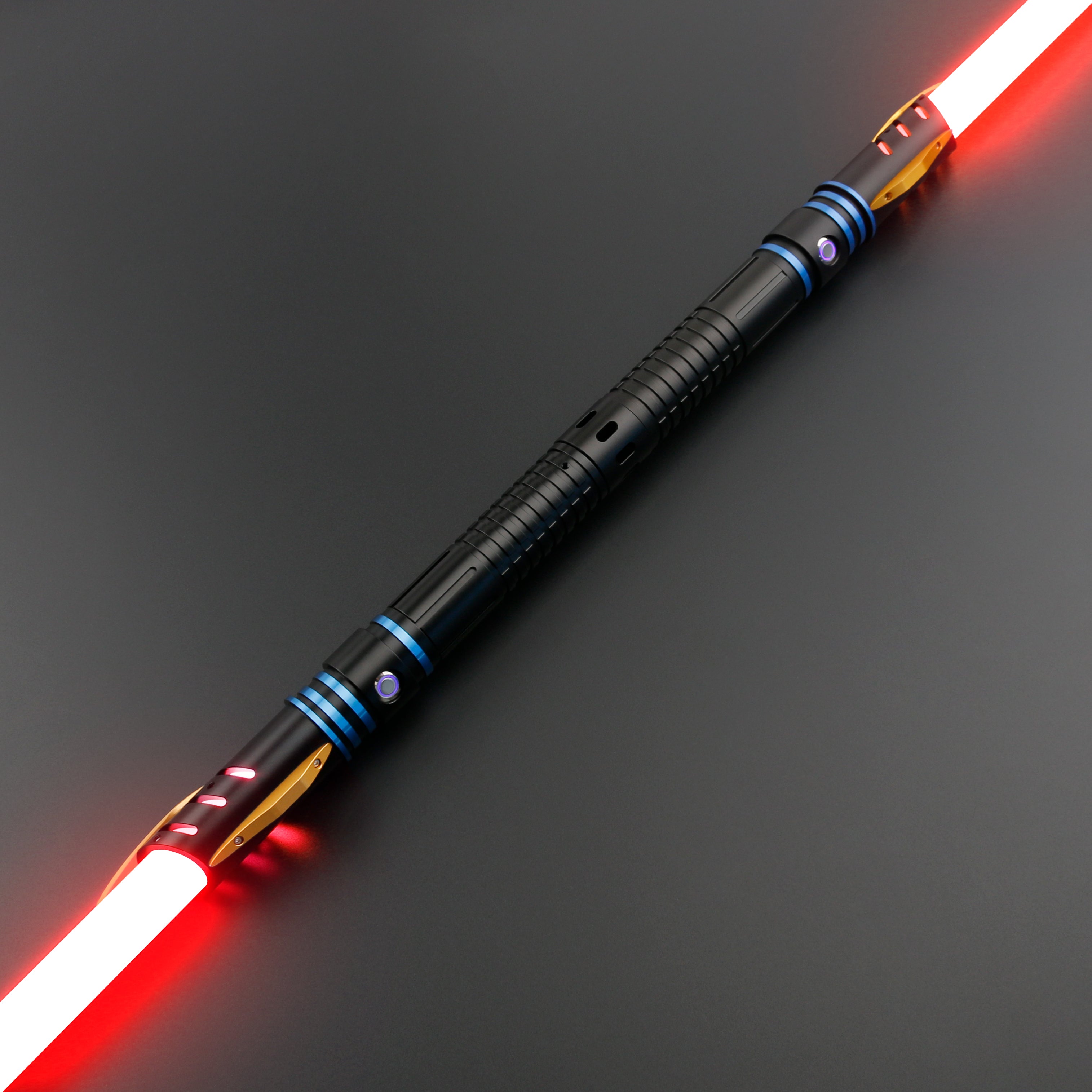 Engineered for serious cosplay and dueling, this tough polycarbonate blade is built to withstand brutal action. Blade colors and FX are easily swapped with a button press or a flick of your wrist, letting you customize your look in seconds. The sound board provides distinct, cinematic audio cues that respond to your every move, while a suite of saber lighting effects delivers dramatic, immersive visuals. The motion sensors are highly responsive, enabling smooth swing ignition and gesture-based starts. In combat, you’ll see a flash-on-clash and a looped lock-up effect that amplifies the intensity of every strike. A rechargeable/removable lithium-ion battery offers all-day cosplay capability, and you can tune the volume or mute it entirely for scenes that call for silence.