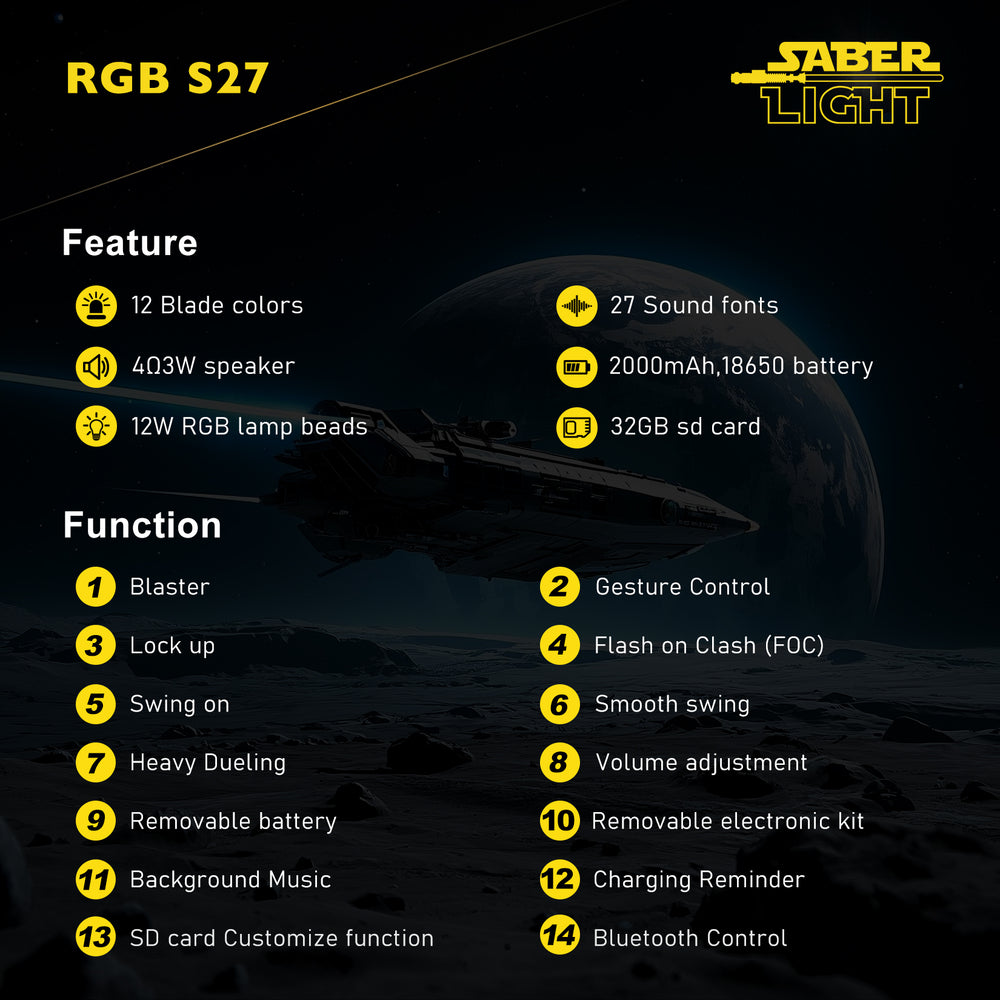Powered by the Saberlight® Neopixel core, you get total control - customize blade colors, ignition effects, and upload your own sound fonts or music via Bluetooth and SD card.