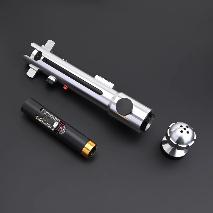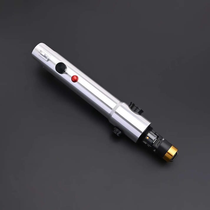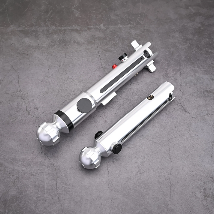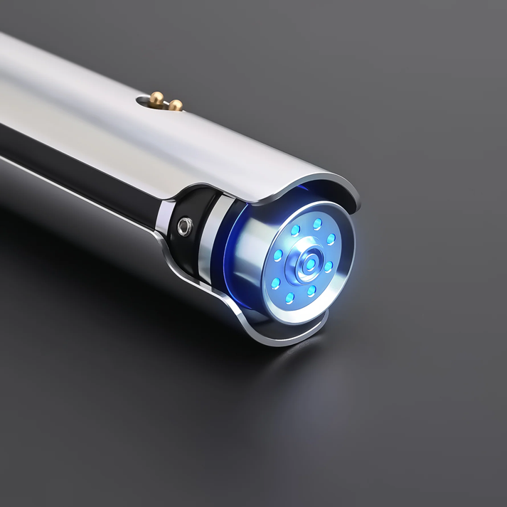 Engineered for serious cosplay and dueling, this tough polycarbonate blade is built to withstand brutal action. Blade colors and FX are easily swapped with a button press or a flick of your wrist, letting you customize your look in seconds. The sound board provides distinct, cinematic audio cues that respond to your every move, while a suite of saber lighting effects delivers dramatic, immersive visuals. The motion sensors are highly responsive, enabling smooth swing ignition and gesture-based starts. In combat, you’ll see a flash-on-clash and a looped lock-up effect that amplifies the intensity of every strike. A rechargeable/removable lithium-ion battery offers all-day cosplay capability, and you can tune the volume or mute it entirely for scenes that call for silence.