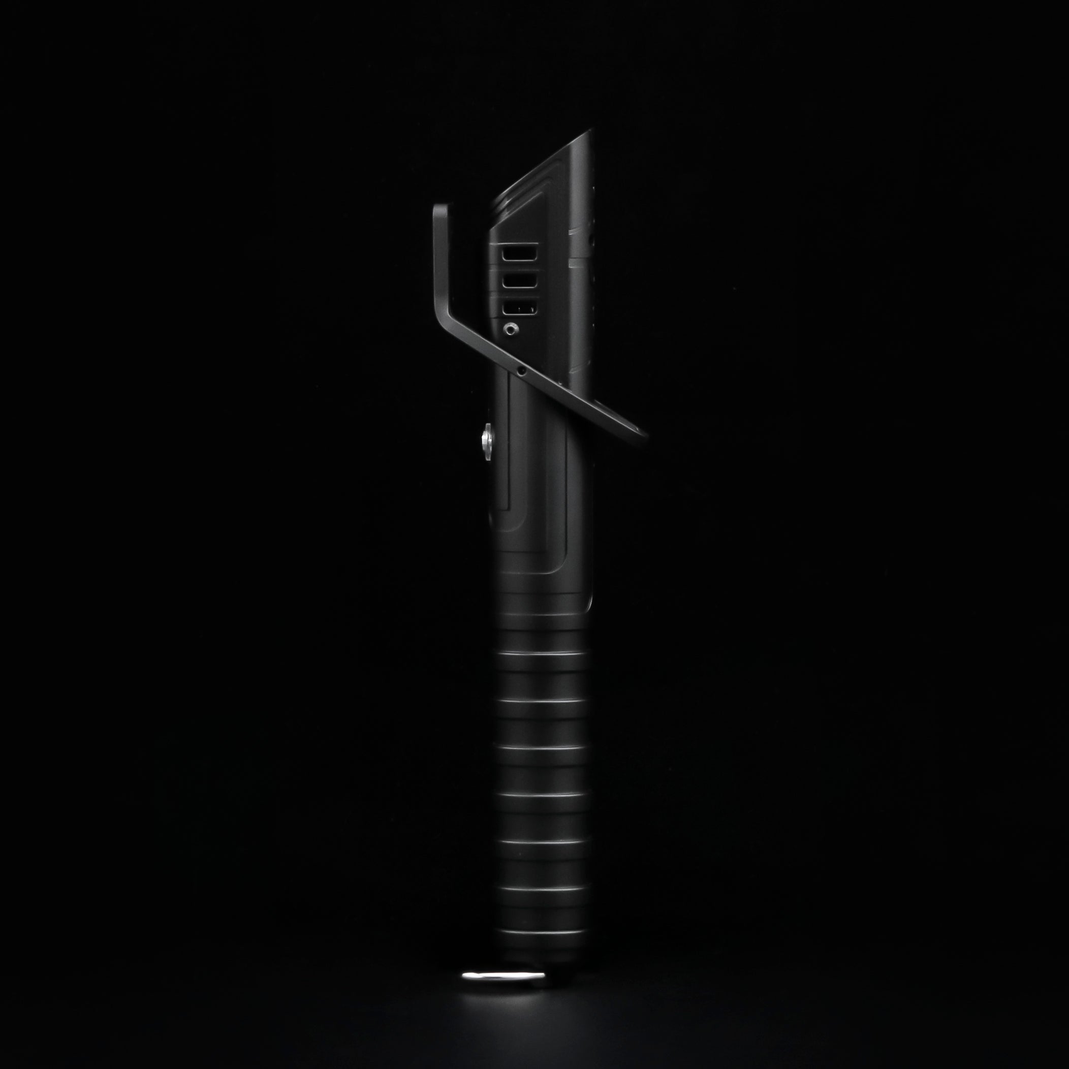 The Darksaber Special Edition lightsaber is a black-bladed stunt edition inspired by the legendary Darksaber. Its uniquely designed blade is reminiscent of a traditional sword, giving it a distinctive Mandalorian aesthetic. The angular pommel, hand guard, and slit-shaped blade emitter add to its striking appearance. With its sleek black cylindrical handle and grooves, the Darksaber Special Edition differs from the Darksaber's flat design and offers improved comfort for one-handed use. This lightsaber is compatible with mainstream blades and the specialized Darksaber blade, available exclusively in Neopixel version. While its structure is simpler than the Darksaber, this design enhances maneuverability and ease of use during duels. Saberlight highly recommends the Darksaber Special Edition for lightsaber enthusiasts, particularly for combat scenarios. Its competitive price point has made it a popular choice in the market, appealing to both collectors and duelists alike.
