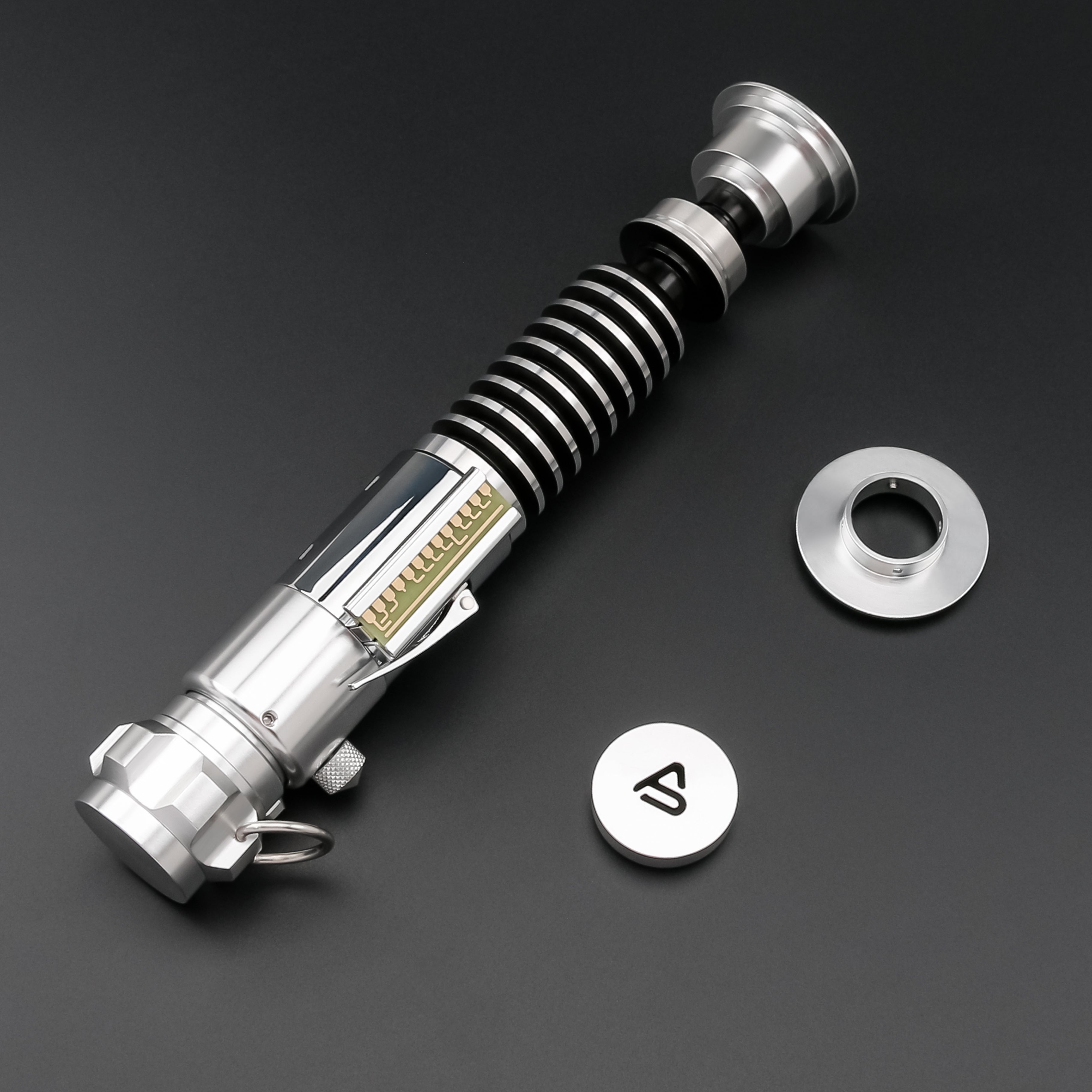 Ignition sequences are iconic and dramatic, supported by a dynamic 50-watt LED strip that creates cinema-like glow on demand. Chip-controlled LEDs illuminate independently for more realistic effects, and the system synchronizes light with sound for maximum immersion. Melt, force, and drop effects add cinematic flair, with blaster bolt deflection visuals to simulate true star-fighter combat. A 32GB SD card allows you to customize and store your personal lightsaber profiles.