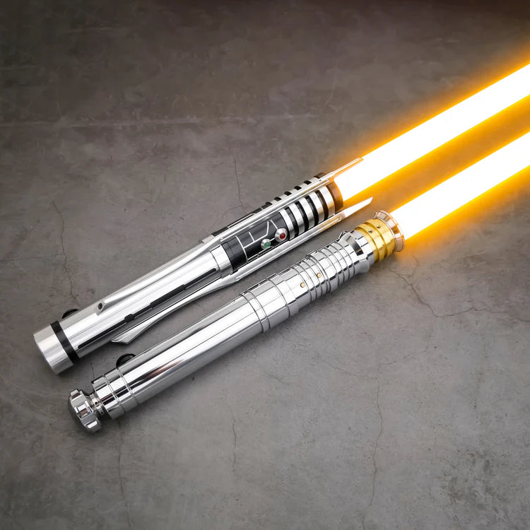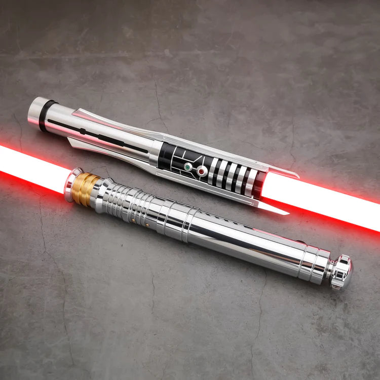 Engineered for serious cosplay and dueling, this tough polycarbonate blade is built to withstand brutal action. Blade colors and FX are easily swapped with a button press or a flick of your wrist, letting you customize your look in seconds. The sound board provides distinct, cinematic audio cues that respond to your every move, while a suite of saber lighting effects delivers dramatic, immersive visuals. The motion sensors are highly responsive, enabling smooth swing ignition and gesture-based starts. In combat, you’ll see a flash-on-clash and a looped lock-up effect that amplifies the intensity of every strike. A rechargeable/removable lithium-ion battery offers all-day cosplay capability, and you can tune the volume or mute it entirely for scenes that call for silence.