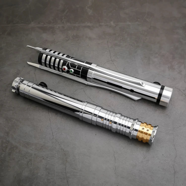 The Prodigal Knight bundle includes Revan's Jedi and Sith lightsabers, crafted from aircraft-grade aluminum with ergonomic grips for dueling. This collector's essential captures Revan's complete journey with authentic design and advanced functionality.