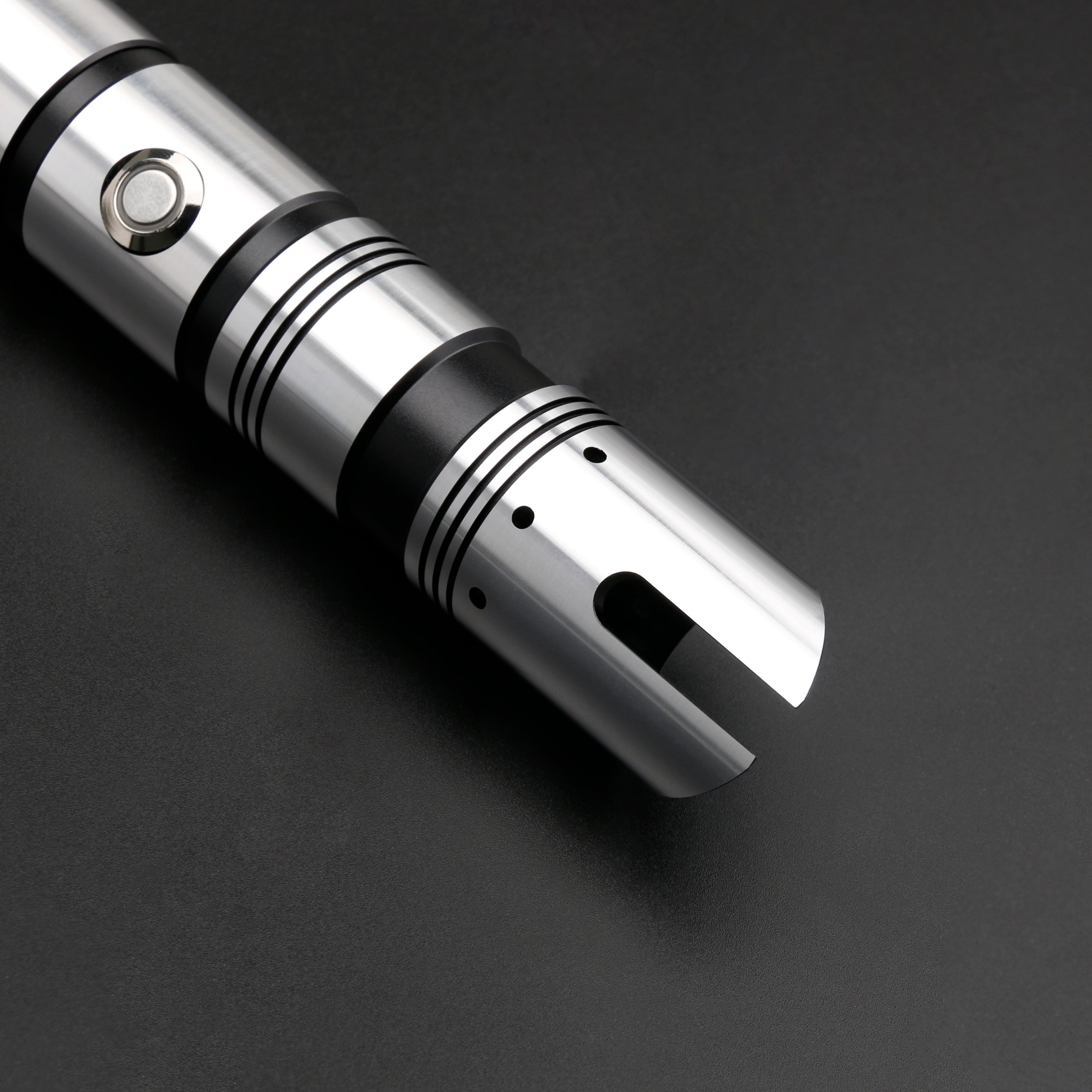The Ultron's lightsaber emitter design provides stabilization for the blade and adds control, making the saber sturdier and great for dueling. The highest quality T6 Aircraft Aluminum hilt and a polycarbonate blade create the ultimate combination providing durability and efficiency.