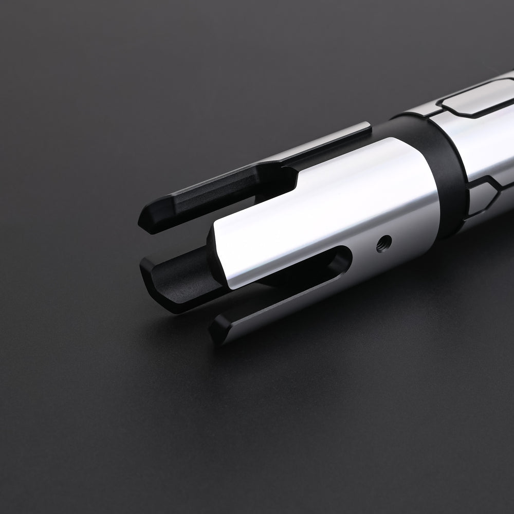 Engineered for serious cosplay and dueling, this tough polycarbonate blade is built to withstand brutal action. Blade colors and FX are easily swapped with a button press or a flick of your wrist, letting you customize your look in seconds. The sound board provides distinct, cinematic audio cues that respond to your every move, while a suite of saber lighting effects delivers dramatic, immersive visuals. The motion sensors are highly responsive, enabling smooth swing ignition and gesture-based starts. In combat, you’ll see a flash-on-clash and a looped lock-up effect that amplifies the intensity of every strike. A rechargeable/removable lithium-ion battery offers all-day cosplay capability, and you can tune the volume or mute it entirely for scenes that call for silence.