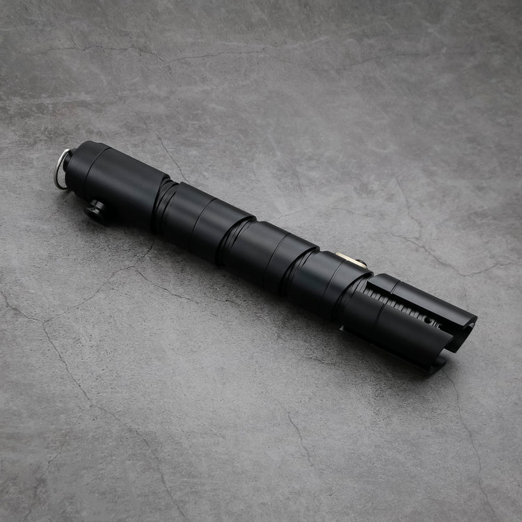 Das Lichtschwert „Stranger Special Edition“, auch bekannt als Qimir, ist eine detailgetreue Nachbildung der legendären Waffe aus der Akolythen-Story. Sein detailliertes Design fängt die elegante und imposante Optik der Sith-Waffe perfekt ein, mit einer hochwertigen schwarzen Metalloberfläche und kantigen Konturen für ein authentisches, kampfbereites Aussehen. Der Griff ist perfekt ausbalanciert und für den Kampf optimiert, sodass er sowohl im Duell als auch bei der Präsentation optimalen Komfort und Kontrolle bietet. Hergestellt aus erstklassigen Materialien, ist dieses Lichtschwert unzerbrechlich und hält selbst härtesten Duellen stand. Bitte beachten Sie, dass das Qimir SE vom legendären Lichtschwert aus „Stranger“ inspiriert ist und nicht in zwei Dolche zerlegt werden kann.