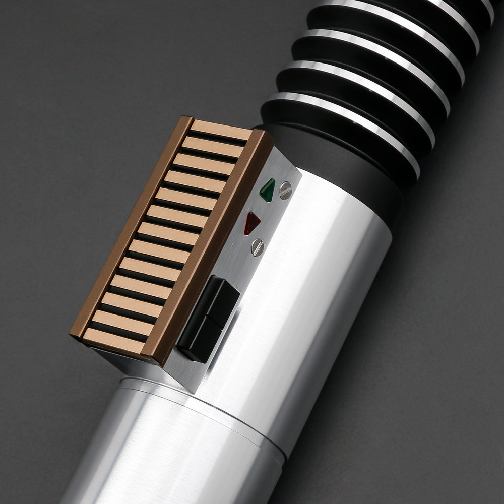 Propulsé par le cœur Saberlight® Neopixel, vous avez un contrôle total – personnalisez les couleurs de la lame, les effets d'allumage et téléchargez vos propres polices de son ou musiques via Bluetooth et carte SD.