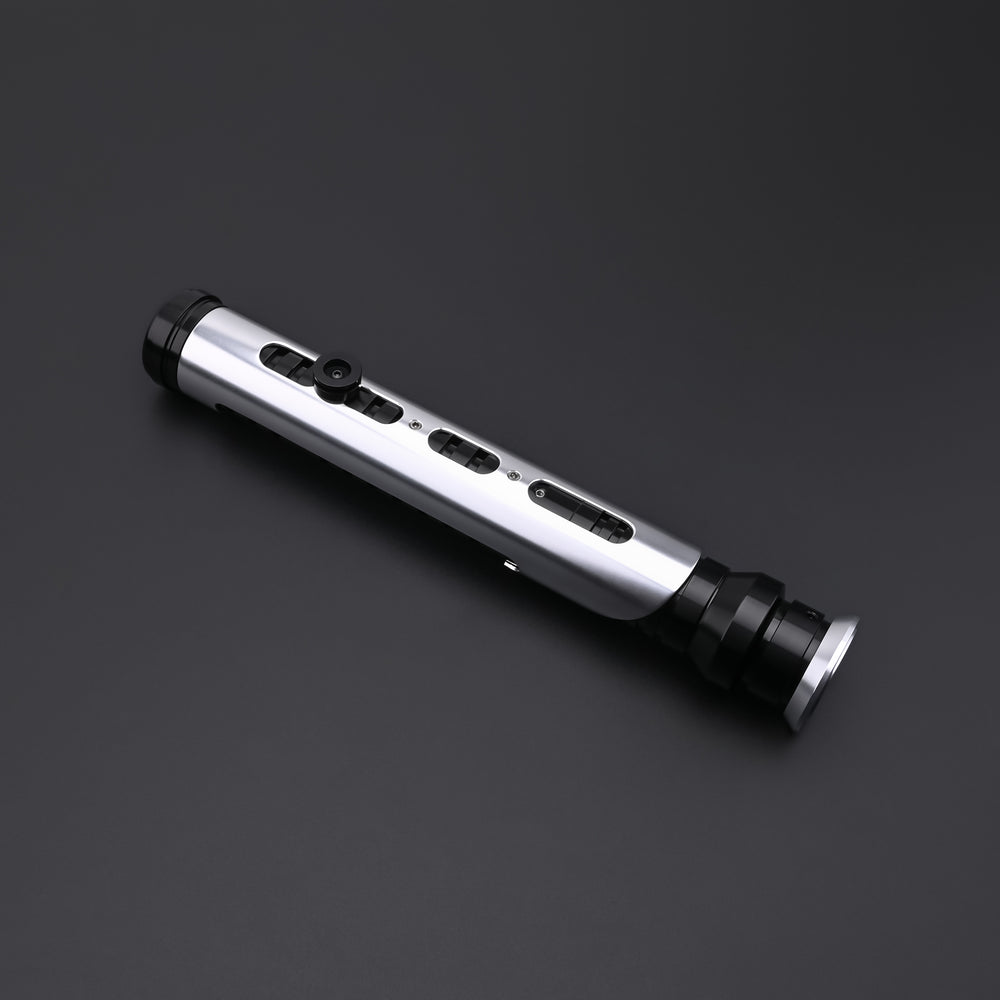 Conçue pour le cosplay et les duels sérieux, cette lame en polycarbonate robuste est conçue pour résister à une action brutale. Les couleurs de la lame et les effets spéciaux sont facilement interchangeables d'une simple pression sur un bouton ou d'un mouvement du poignet, vous permettant de personnaliser votre look en quelques secondes. La carte son offre des signaux audio distincts et cinématiques qui réagissent à chacun de vos mouvements, tandis qu'une suite d'effets lumineux de sabre offre des visuels dramatiques et immersifs. Les capteurs de mouvement sont très réactifs, permettant un allumage fluide et des démarrages basés sur des gestes. En combat, vous verrez un éclair au choc et un effet de blocage en boucle qui amplifie l'intensité de chaque coup. Une batterie lithium-ion rechargeable/amovible offre une capacité de cosplay toute la journée, et vous pouvez régler le volume ou le couper entièrement pour les scènes qui nécessitent le silence.