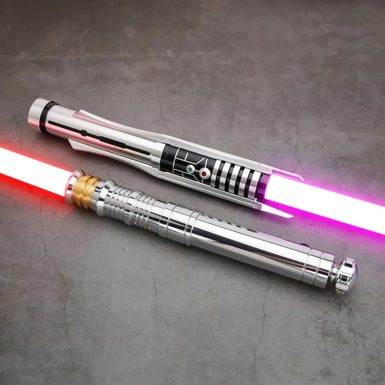 L'effet d'allumage, la police sonore, le changement de couleur, le balancement fluide et le contrôle Bluetooth d'un sabre laser sont tous déterminés par le noyau du sabre laser, et non par le modèle. Différents modèles de sabre laser peuvent avoir des structures de noyau différentes, mais tant que la version de noyau est la même, toutes les fonctionnalités du sabre laser seront les mêmes. Chez Saberlight, toutes nos versions ont un noyau Neopixel. (SNV4 Pro et Proffie V2.2 sont tous deux des noyaux Neopixel)