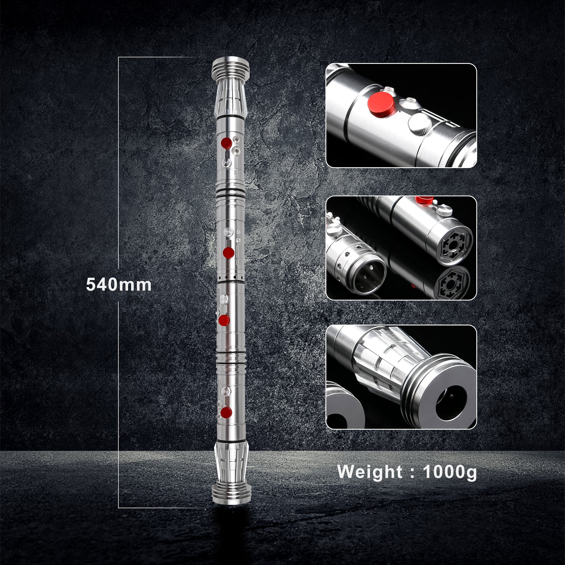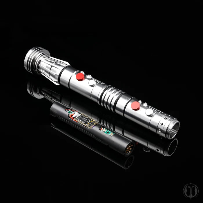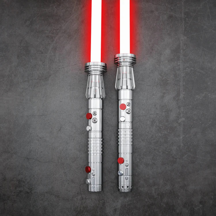 Needing no introduction, Maul is a homage to the legendary double-bladed lightsaber wielded by Darth Maul. This model consists of two sabers that can be put together to create a saber staff. With its sturdy aluminum hilt, durable dueling blades, motion-based sound effects, comprehensive visual effects, many different sound fonts, and changeable blade colors, Maul can be wielded in an infinite number of ways.
