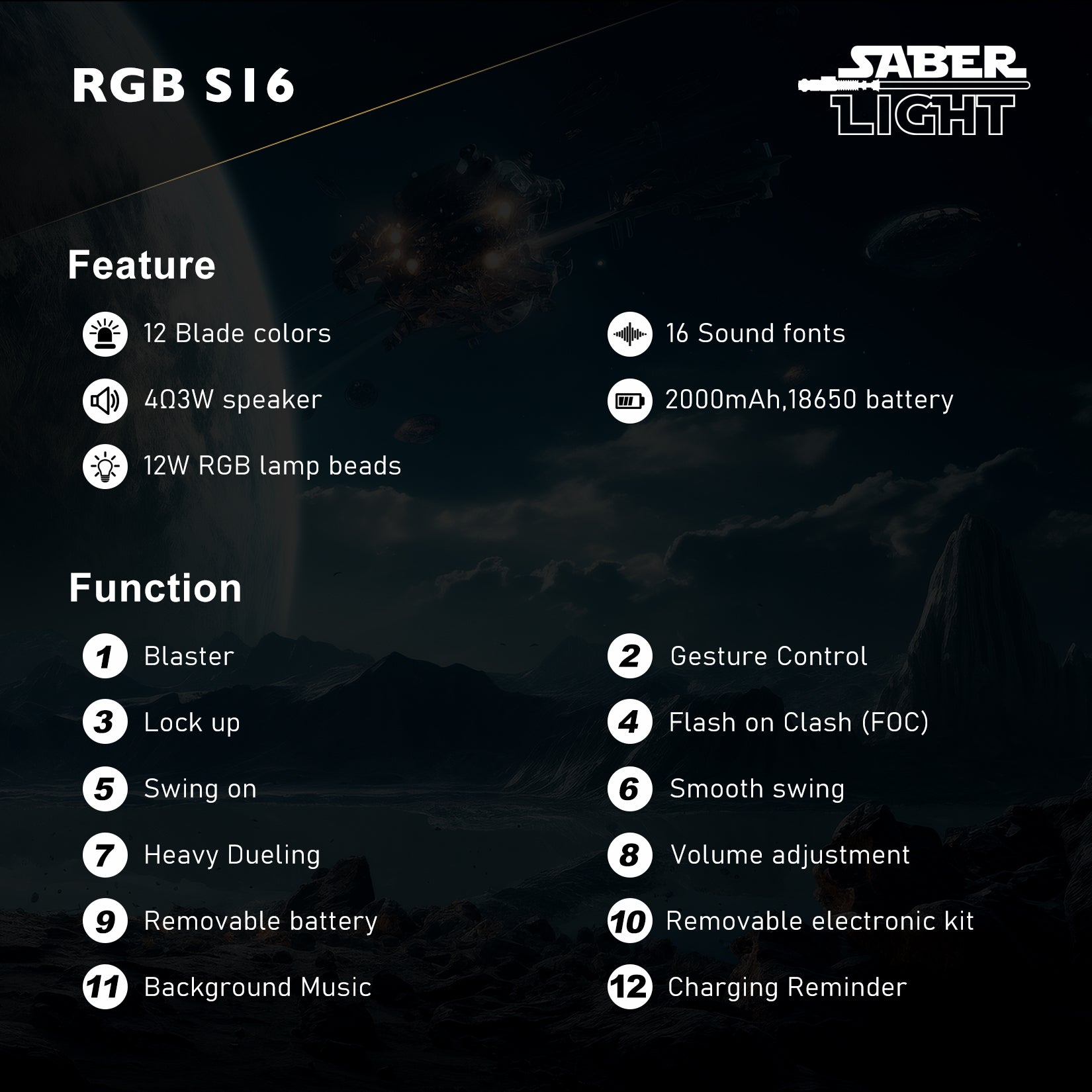 Premium Neopixel Soundboard Realistic sound effects: 27 soundfonts for realistic saber sound effects, character quotes, and iconic music, volume adjustment and mute mode.