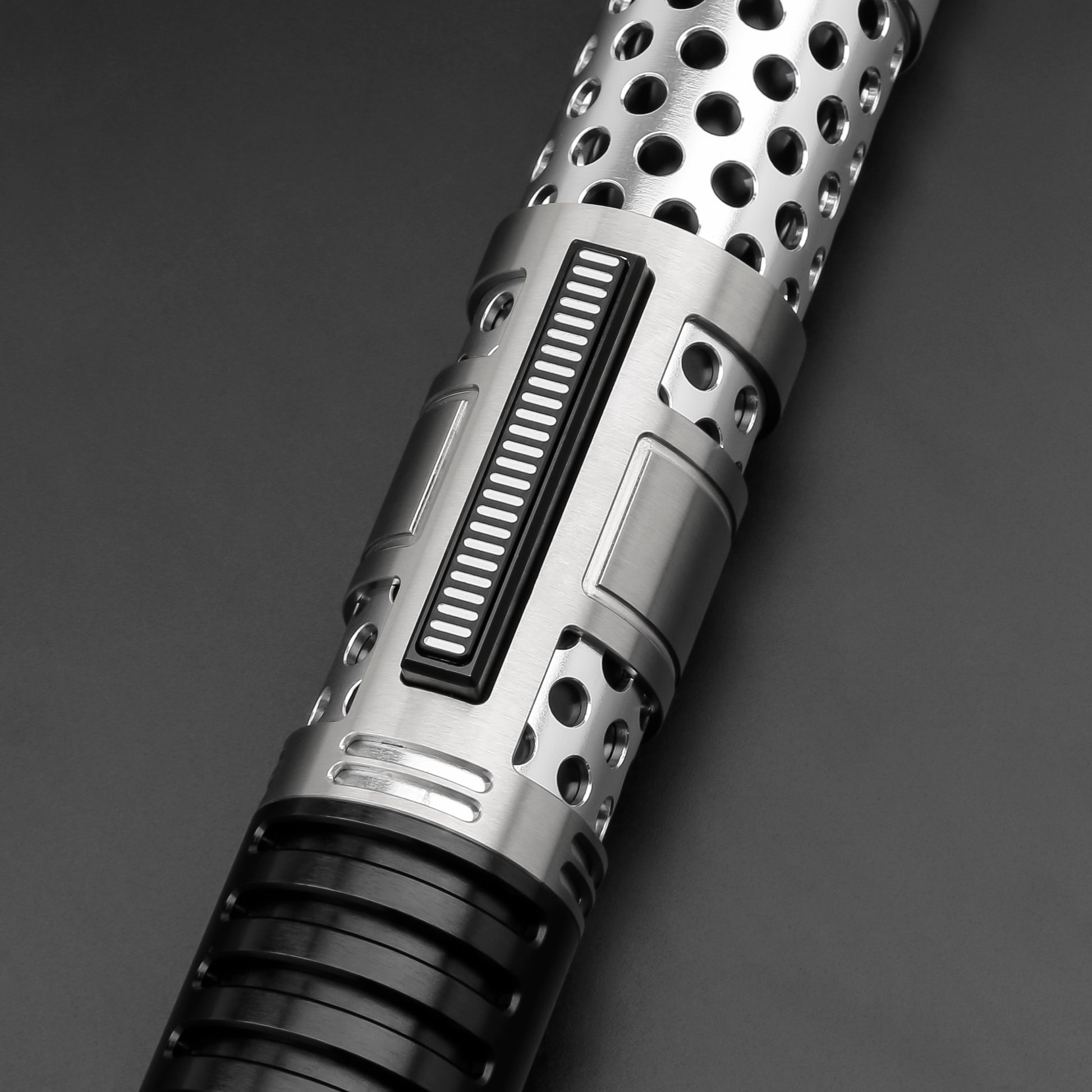 The Ventress lightsaber is an exceptional inclusion to any Star Wars assortment. Based on the character from "Star Wars: Dark Disciple" by Christie Golden, it boasts a distinctive design that sets it apart from traditional models. The Ventress lightsaber showcases a one-of-a-kind cylindrical hilt and a perforated metal upper section, allowing for adequate ventilation during intense combat scenarios. An ideal combination of practicality and authenticity, it is a must-have for devoted Star Wars enthusiasts and collectors alike.